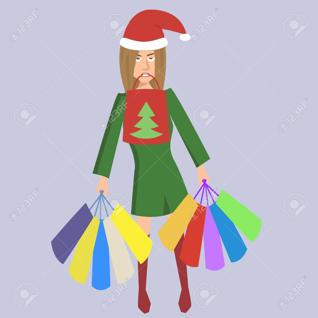 Gratuit Femme Fatiguee Avec Des Sacs A Provisions Et Chapeau De Noel