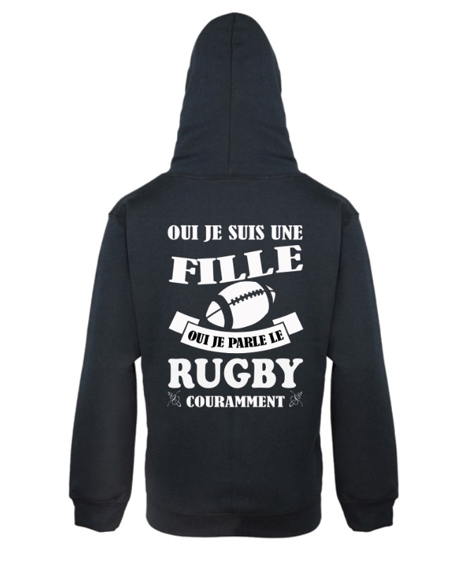Gratuit Sweat Shirt Noir A Capuche Mixte Pour Femme Qui Parle Rugby