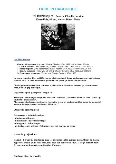 Gratuit Fiche Pedagogique 5 Burlesques Bowers Chaplin Cinemed